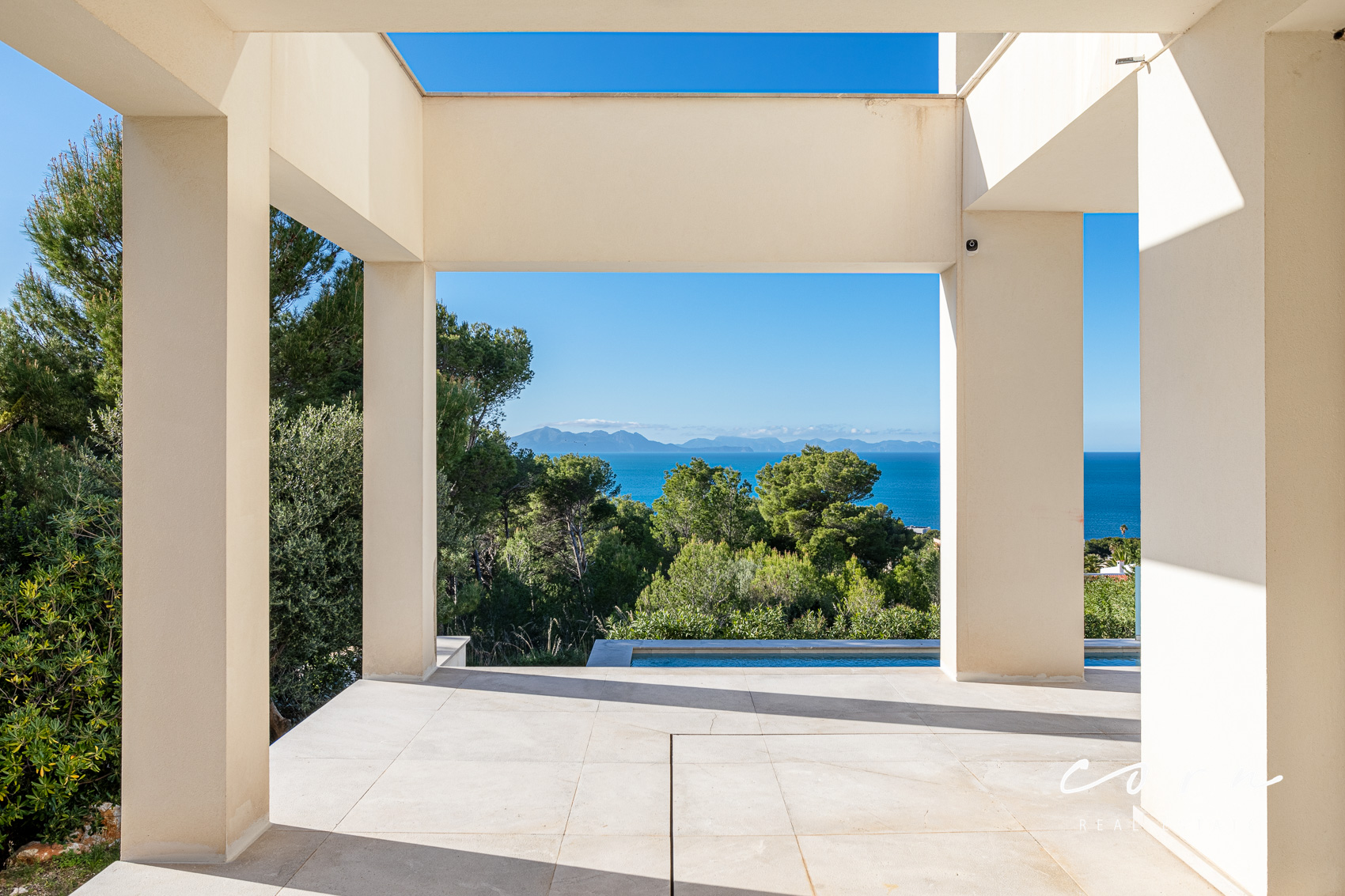 En una posición elevada en el tranquilo pueblo costero de Betlem, esta excepcional villa con vistas al mar se presenta como una declaración arquitectónica en el noreste de Mallorca. La propiedad, realmente impresionante, se extiende en tres niveles y la arquitectura abierta y las amplias terrazas de más de 300 m² (!) abren espectaculares vistas panorámicas sobre el mar Mediterráneo y el pintoresco paisaje costero.