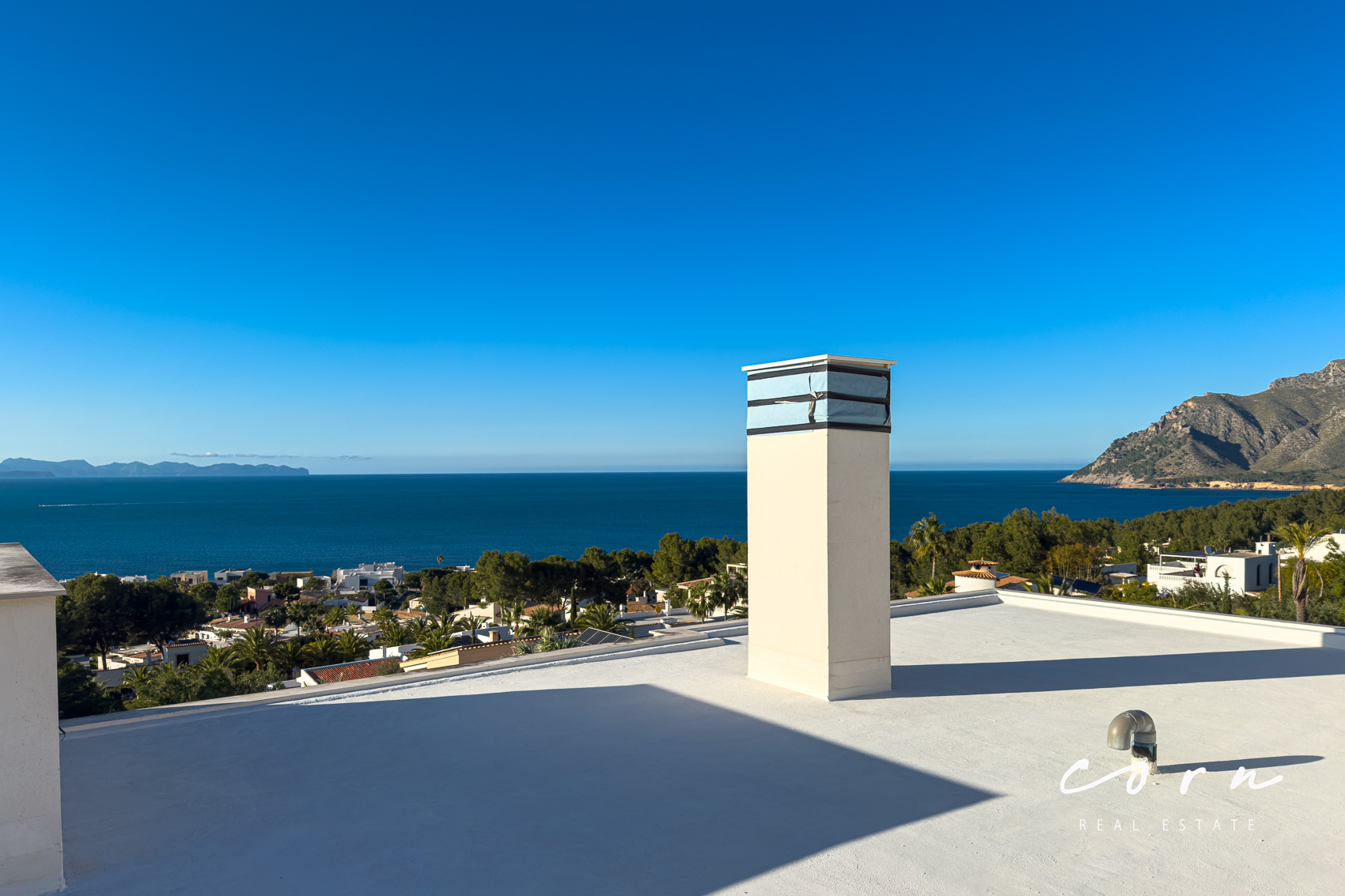 La planta superior alberga dos amplios dormitorios, comunicados por un salón de 30 m². Ambos dormitorios tienen cuarto de baño en suite. El dormitorio principal tiene una terraza privada con fenomenales vistas al mar. También se ha incluido un vestidor privado y un baño muy espacioso.
