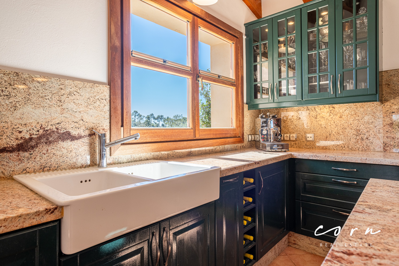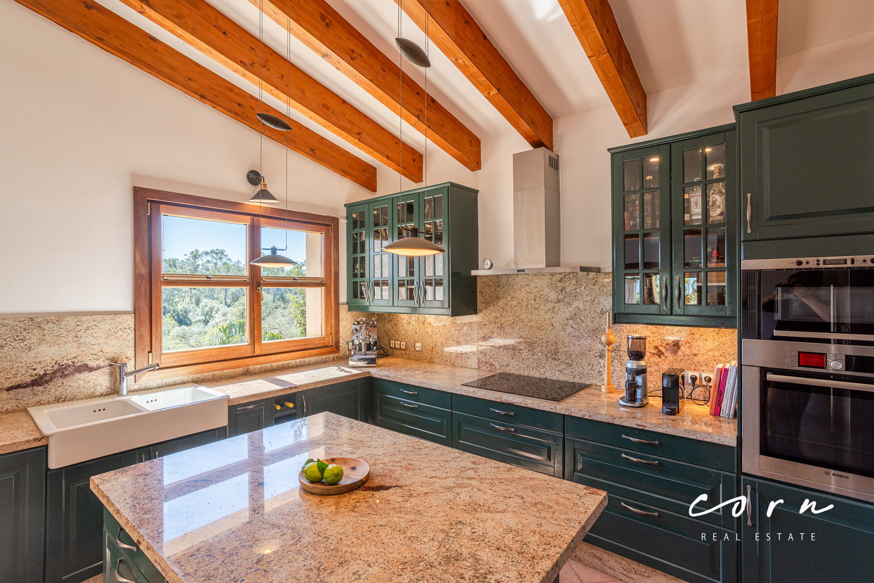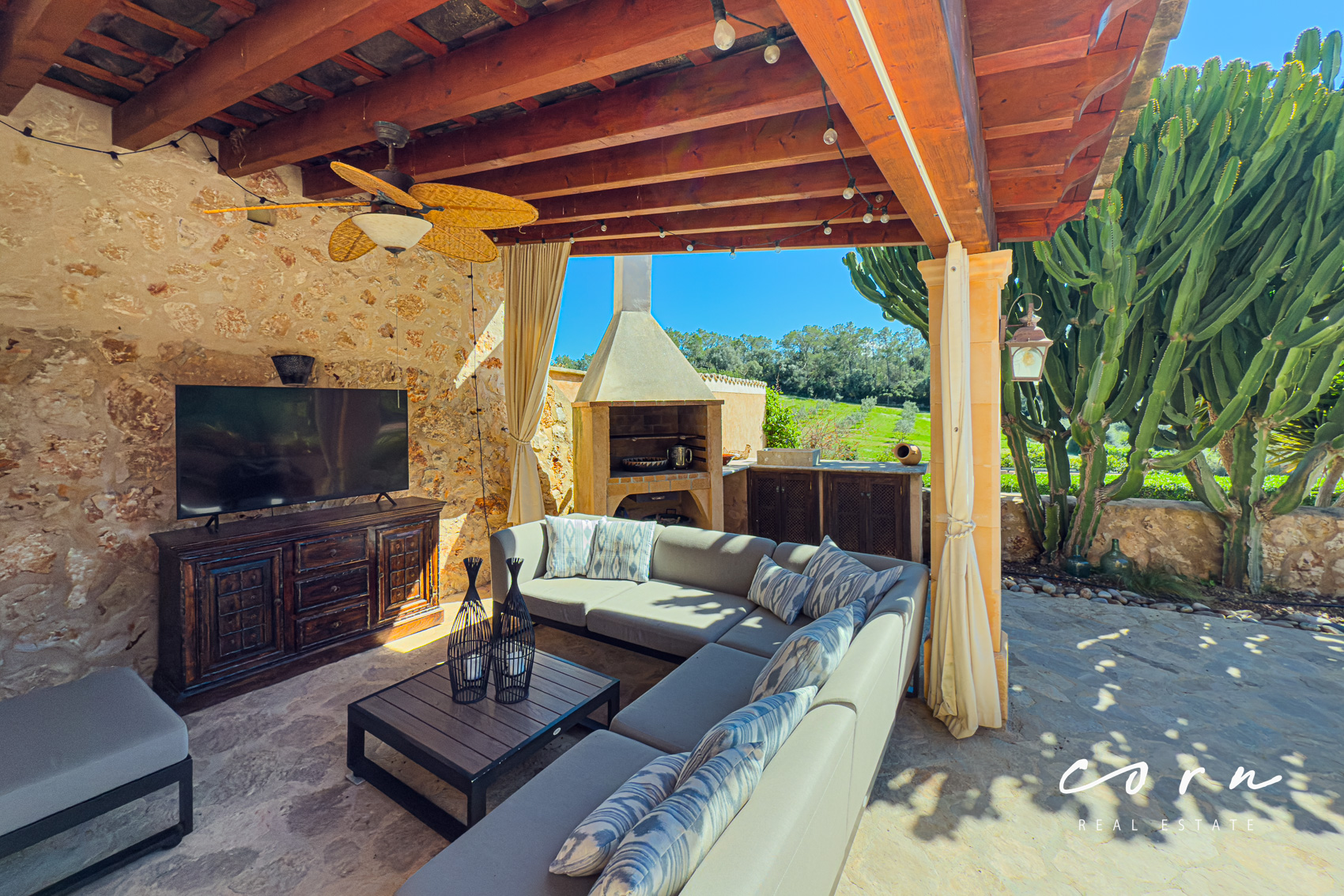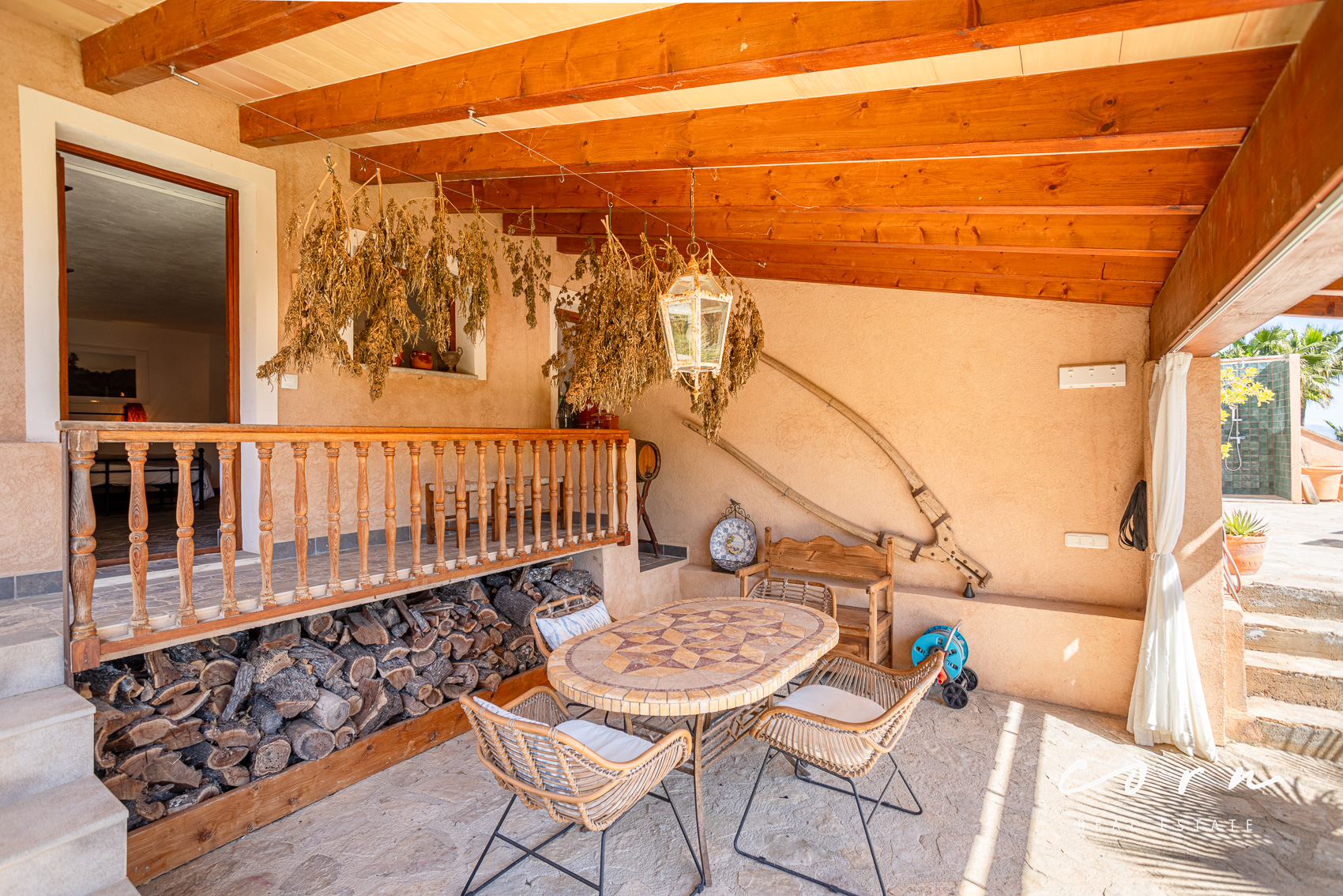 Auf einer Wohnfläche von insgesamt rund 327 m² bietet die Immobilie einen Wohn-Essbereich mit doppelter Raumhöhe und integrierter Galerie, eine voll ausgestattete Küche mit Blick auf das Grundstück, ein Master-Schlafzimmer mit Bad ensuite und ein weiteres Zimmer (das zur Zeit als Büro genutzt wird) sowie ein Gästebad. Direkt vom Wohn-Essbereich erreicht man den grosszügigen Porche, die Poolterrasse und den 42 m² grossen Salzwasser Pool. Von hier blickt man über sein Grundstück bis zum Städtchen Ariany und den dahinter liegenden Bergen des Llevant.