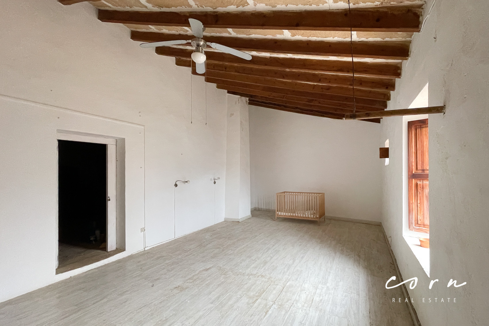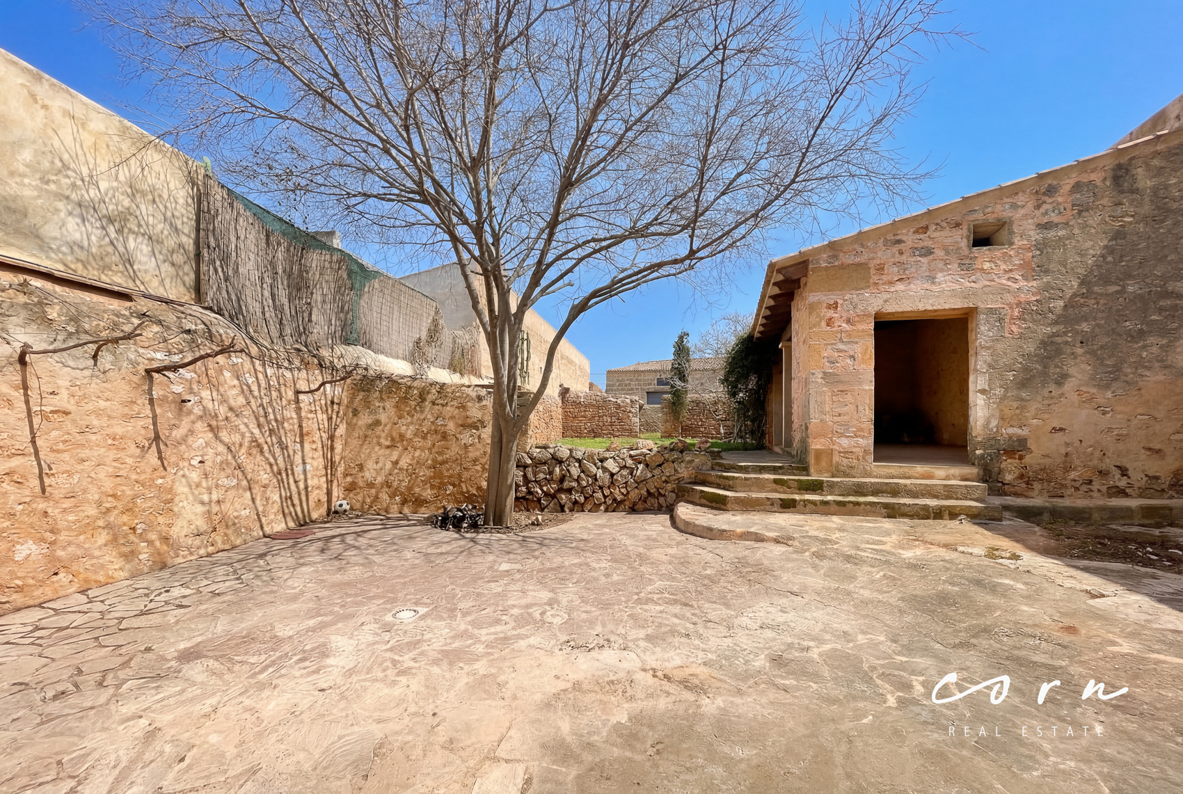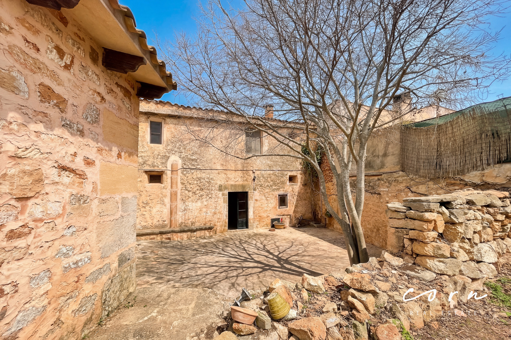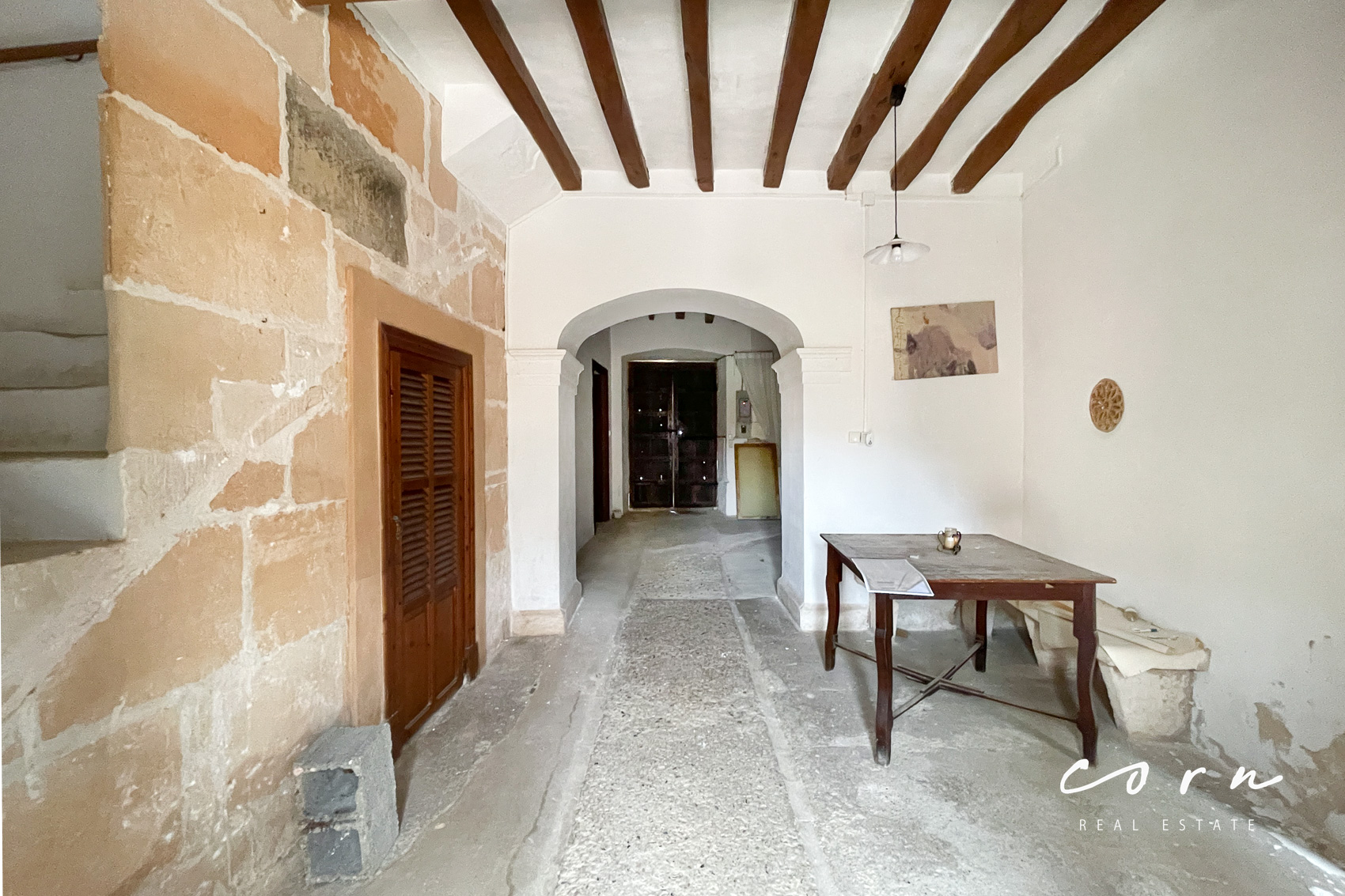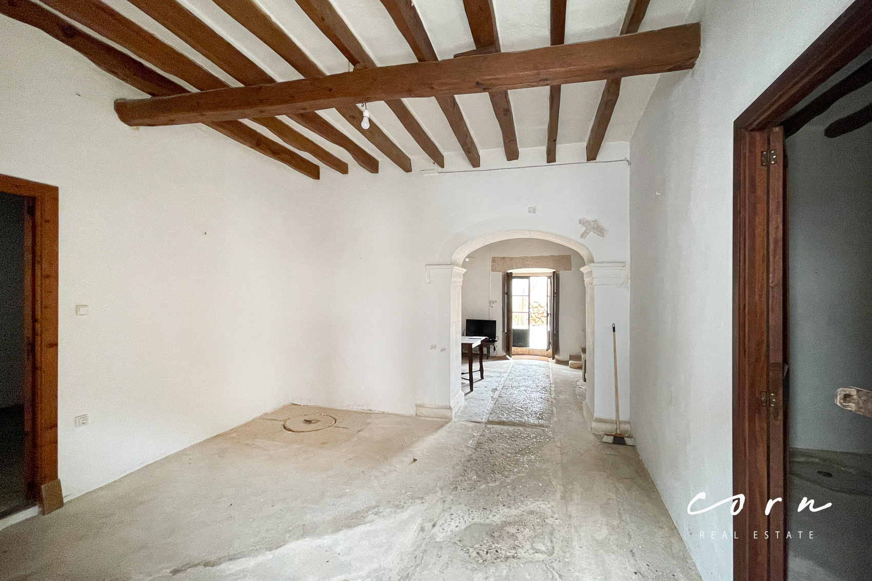Mit besonderem Gespür für die historischen Elemente wird eine umfassende Sanierung vorgenommen. Die teilweise mehr als drei Meter hohen Räume und der grosse Patio geben der zukünftigen Immobilie ein repräsentatives Auftreten während die historischen Elemente wie Holzbalkendecken und Natursteinwände den mediterranen Charme betonen.